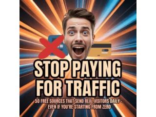 **“Stop paying for traffic. Discover 50 proven free traffic sources to attract real visitors using social platforms, SEO, communities, and content repurposing—no ads required.”**