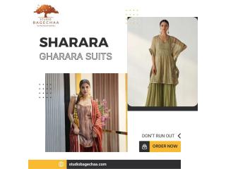 Redefine occasion wear through designer sharara gharara pieces that highlight bold craftsmanship and fluid designs. Perfect for weddings and sangeet nights, these styles offer a refreshing take on ethnic fashion with striking textures and modern cuts.