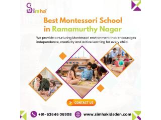 Simha Kidsden is one of the best Montessori schools in Ramamurthy Nagar, offering a child-friendly, engaging learning environment. Our Montessori method focuses on hands-on activities to develop independence, creativity, and problem-solving skills. Every child receives personalized guidance from trained educators and learns at their own pace. We follow a structured Montessori curriculum, which makes learning joyful, natural, and meaningful. Our caring classrooms encourage social interaction, confidence, and curiosity every day. You can provide your child with a happy and exciting start to their education by joining Simha Kidsden.