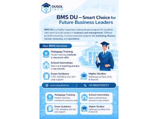 Choosing BMS DU gives students a strong foundation in business management and professional skills. The program teaches accounting, business law, marketing, and organizational behavior. BMS DU focuses on both academic learning and practical experience. Students participate in presentations, projects, and internships to gain industry exposure. This course prepares learners for careers in corporate firms, startups, and management roles. It also provides a solid base for higher studies such as MBA. BMS DU is an excellent option for students aiming for long-term success in the business world.
