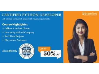 DataMites Institute in Bangalore is a top Python institute in Bangalore, offering comprehensive training in Data Analytics, Machine Learning, Python, Tableau, Deep Learning, and Artificial Intelligence. The program is delivered by experienced industry professionals and accredited by IABAC and NASSCOM FutureSkills, with a strong focus on hands-on learning and practical exposure to help learners earn globally recognized certifications and succeed in a competitive job market. Course Details: 400+ Learning Hours Internship and Job Assistance 4 Months Training