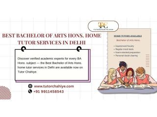 Achieve academic excellence with expert guidance tailored to your learning needs. Our Best Bachelor of Arts hons. home tutor services in Delhi provide personalized support, flexible schedules, and experienced educators focused on strong conceptual clarity and exam success. Get one-on-one attention that enhances performance and confidence. Visit Tutor Chahiye to connect with qualified tutors today.