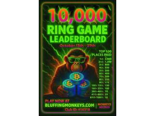 The ultimate poker challenge is here! From October 13–27, battle it out on BluffingMonkeys.com for your share of $10,000 in prizes. Only the top 100 grinders will rise to glory. No excuses just pure poker action. ♠️
