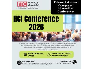 Call for Papers open for HCI Conference 2026, a key track of Future Technologies Conference (FTC) by SAI Conference in Berlin, Germany. This event is essential for exploring future innovations in human-computer interaction, immersive technologies, wearable computing, multimodal interfaces, and human-AI collaboration. It offers a global platform to publish peer-reviewed research and connect with experts in Deep Learning Conference, Data Science Conference, and Technology Conference domains. Researchers, academicians, students, and industry professionals are invited to participate.Secure your spot and boost your research impact! Call for Papers: https://saiconference.com/FHCI Date: 15-16 October 2026Address: Grünauer Str. 112557 Berlin, GermanyOrganization:SAI ConferenceMail: FTC@SAIConference.com