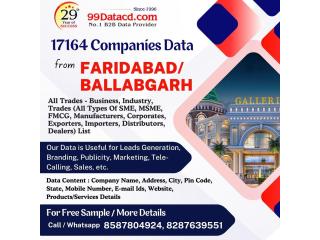 Get access to 12,226 FARIDABAD / BALLABGARH B2B companies' data with contact details in Excel format at #99DataCD. (All types of SME, MSME, manufacturers, exporters, importers, corporates, distributors, dealers, consultants, etc.). 99DataCD is a one-stop source that provides a verified list of companies in Faridabad / Ballabgarh with contact details in an Excel file.