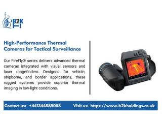 B2K Holdings offers thermal cameras designed for surveillance, reconnaissance, and low-visibility operations. With rugged construction and advanced infrared technology, these systems deliver accurate detection and tracking in darkness, smoke, and adverse weather conditions.