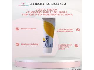 Elidel Cream (Pimecrolimus Cream) 1% is a prescription medication used to treat mild to moderate eczema (atopic dermatitis). Pimecrolimus Cream 1% helps reducing skin inflammation, redness, and itching without using steroids, making it suitable for sensitive areas. Suitable for adults and children as directed by healthcare professional. Available at price, Buy @onlinegenericmedicine.com