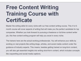 Skillwaala offers free content writing courses available in both online and offline learning modes. The course focuses on writing fundamentals, content structure, and basic SEO concepts to build strong skills. It is suitable for beginners who want flexible learning with practical guidance and real writing practice.