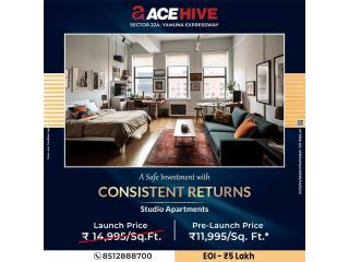 ACE Hive Studios by ACE Group present a premium studio living concept designed for modern professionals and investors seeking refined comfort with dependable returns. As the first-ever business suite–style studios by ACE Group, the project introduces a unique blend of residential elegance and hospitality-grade services at Sector 22A, Yamuna Expressway, one of NCR’s fastest-growing corridors. Each studio is a fully furnished 770 sq. ft. business suite, thoughtfully planned to offer spacious interiors, smart layouts, and contemporary finishes. Defined living, resting, and work zones ensure both comfort and functionality, making these studios ideal for professionals, corporate occupants, and long-stay residents who value convenience and quality. A key highlight is the pre-leased association with Sarovar Hotels, a renowned hospitality brand known for professional management and service excellence. This partnership ensures seamless operations, high maintenance standards, and a hassle-free ownership experience, while also strengthening rental stability and tenant appeal. ACE Hive Studios are offered at a starting price of ₹92.36 lakhs*. Buyers can secure early access with an EOI of ₹5 lakhs only and benefit from a structured 50:25:25 payment plan. With its strategic location, premium configuration, and hospitality-backed management, ACE Hive Studios offer a compelling opportunity for elegant living and confident investment on the Yamuna Expressway.