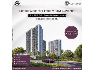 AU The Sunflower Phase 1, located in Aditya World City, NH-24, Ghaziabad (Shahpur Bamheta), is an ultra-luxury residential project thoughtfully designed for modern, secure, and comfortable living. Offering premium 3 BHK apartments, the project combines elegant architecture, spacious layouts, and advanced lifestyle features to create a refined living experience.