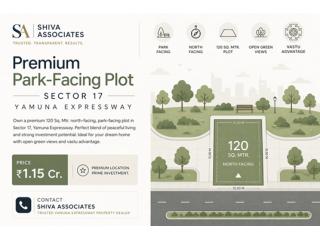 Buy a premium 120 Sq. Mtr. north-facing, park-facing residential plot in Sector 17 Yamuna Expressway, located near the upcoming Jewar Airport in Greater Noida. Ideal for building your dream home or making a high-return investment in a rapidly growing real estate corridor.