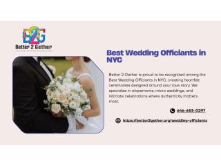 Better 2 Gether stands out among the Best Wedding Officiants in NYC by offering personalized, meaningful ceremonies for every couple. Whether you’re planning an elopement or an intimate gathering, we craft a ceremony that captures your love and commitment. We handle everything from ceremony structure to legal paperwork, ensuring a smooth experience from start to finish. Our thoughtful approach and attention to detail make us a trusted choice among the Best Wedding Officiants in NYC.