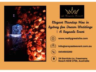 Create a magical celebration with premium mandap hire in Sydney by A Royaale Event. Our expert team designs stunning wedding setups that blend tradition with modern elegance, ensuring your special day stands out beautifully. From intricate décor to flawless execution, every detail is handled with creativity and precision. As a trusted wedding organiser and decorator in Wollongong, we bring years of experience in crafting unforgettable events tailored to your vision and budget. Whether it’s a grand Indian wedding or an intimate ceremony, we transform your ideas into breathtaking reality with style, sophistication, and complete professionalism.