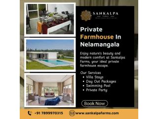 Sankalapa Farms is a leading private farmhouse destination in Nelamangala, Bangalore. We provide a luxurious farmhouse experience surrounded by lush greenery, fresh air and peaceful landscapes. Our spaces offer modern comforts, spacious interiors and peaceful outdoor areas perfect for family gatherings, celebrations or quiet vacations. We ensure every stay is comfortable, memorable and refreshing with personalized services customized to your needs. Our commitment to privacy, relaxation and nature-inspired living makes Sankalapa Farms the ultimate farmhouse destination in Bangalore. Experience the perfect combination of luxury and nature at Nelamangala’s best resort.