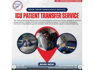 Our train ambulance service with ICU setup ensures critical care, doctor assistance, and bed-to-bed patient transfer with 24/7 emergency medical support. Trusted Train Ambulance Service for long-distance patient transport with advanced life support and quick booking.