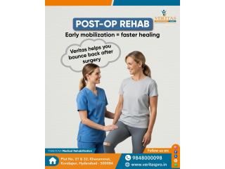 Veritas Hospitals in Hyderabad offers dedicated Post Operative Rehabilitation Services to support faster and safer recovery after surgery. Our expert medical and physiotherapy teams provide personalized care plans that include pain management, mobility training, wound care, and strength rebuilding—ensuring a smooth transition from hospital to home.