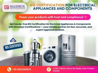 Searching for a reliable BIS Certification agency in Noida? Silvereye Certifications is here to help you get your electrical appliances and components approved without hassle. Our expert team manages documentation, testing, and complete compliance support to ensure a smooth and quick certification process. We focus on accuracy, transparency, and timely approvals so your products can enter the market with confidence.