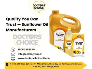 When choosing sunflower oil, the manufacturer behind the product matters as much as the product itself. Doctors' Choice is among India's trusted sunflower oil manufacturers, producing refined sunflower oil packed with Omega-6 Fatty Acids, Linoleic Acid, and natural Tocopherols — all under strict FSSAI, Halal, and SGS quality certifications. Inexpensive yet impressive, available across Blinkit, Zepto, Flipkart, and Swiggy Instamart in pouches, bottles, jars, and tins. Explore the range today.