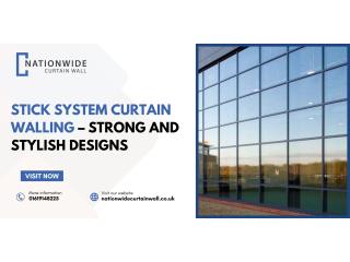 The curtain walling system from Nationwide Curtain Wall offers a smart and modern way to design building fronts. The stick system curtain walling is built on-site, making it flexible, strong, and stylish. It protects your building from the weather and provides a clean and professional appearance. Contact Nationwide Curtain Wall today for a free quote!