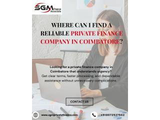 Finding the right private finance company in Coimbatore can ease financial pressure during urgent situations. With simple procedures, quicker responses, and flexible options, local finance support helps individuals and businesses manage immediate needs more confidently Call us : +918072527562 and visit : https://www.sgmprivatefinance.com
