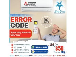 Mitsubishi Aircon Error Code: Seeing an error code on your Mitsubishi air conditioner? It could point to problems such as sensor faults, refrigerant issues, or fan and compressor failures. LetsCool Aircon specialises in Mitsubishi aircon servicing in Singapore, offering fast and accurate diagnostics with professional equipment. Our skilled technicians provide reliable repairs using authentic parts for both homes and businesses. With clear pricing and trusted service, LetsCool helps get your aircon running smoothly again—quickly and hassle-free.