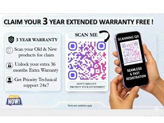 Protect your tech investment today! We are now offering an exclusive FREE 3-Year (36 Months) Extended Warranty on both your old and new product . Get the long-term protection your devices deserve—at no extra cost.