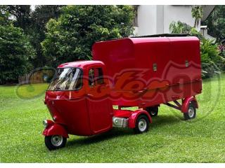 Turn heads anywhere with the Ape Vespa Bajaj Wings Box Red, a fully restored 150cc classic three-wheeler built for mobile entrepreneurs, coffee carts, brand activations, and creative pop-