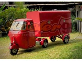 Turn heads anywhere with this fully restored 150cc Ape Vespa Bajaj Wings Box Red, the perfect classic three-wheeler for mobile entrepreneurs, coffee carts, brand activations, and lifestyle pop-ups.